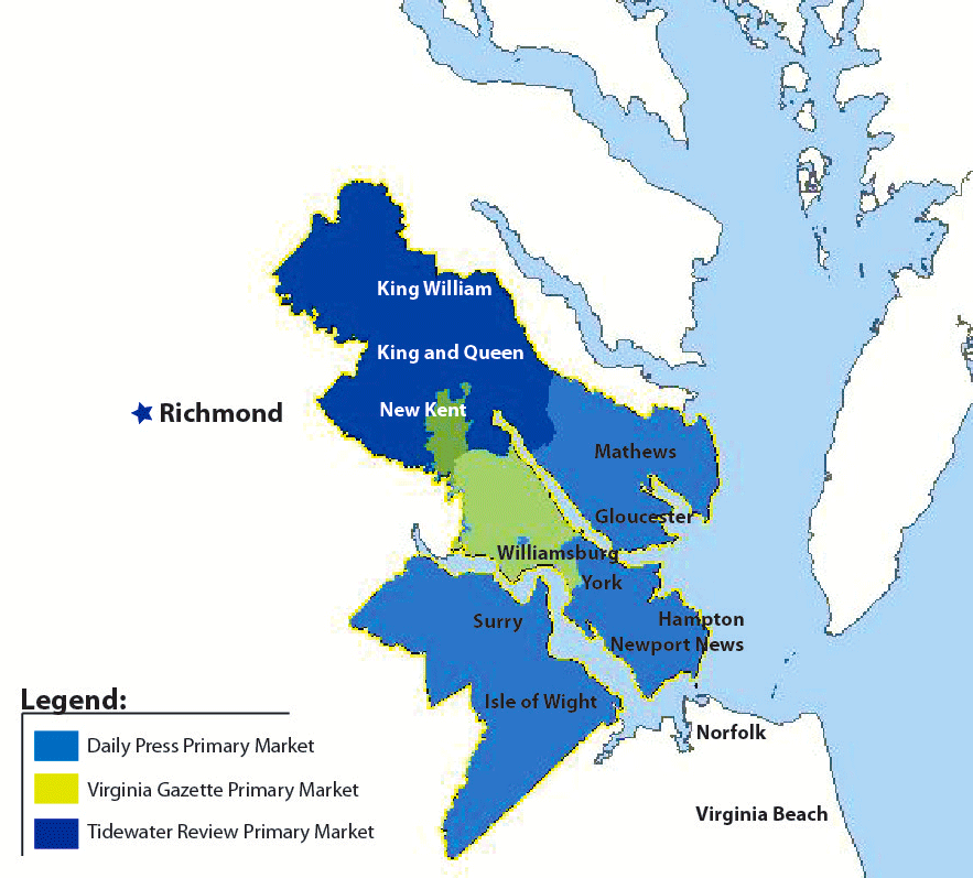 Reach from Isle of Wight County to Mathews County with primary coverage on the Peninsula.
